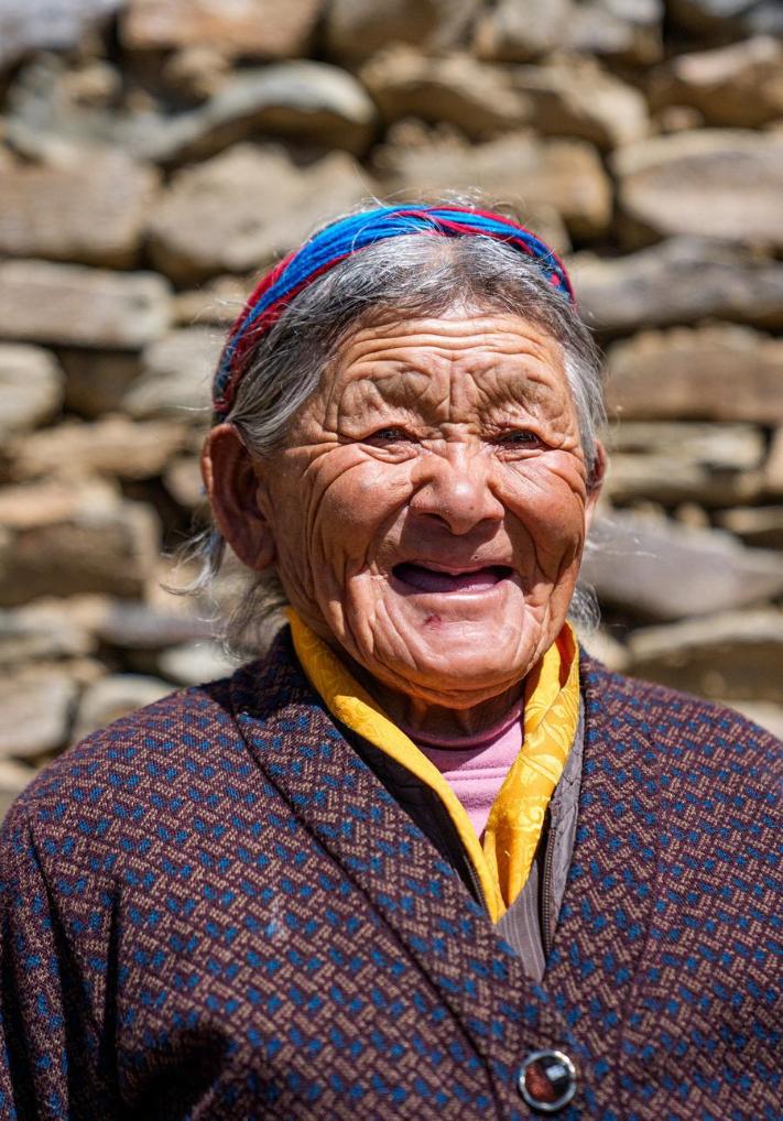 The elderly lady's smile, etched with deep wrinkles, speaks volumes of peace and joy of a life freed from hardship.