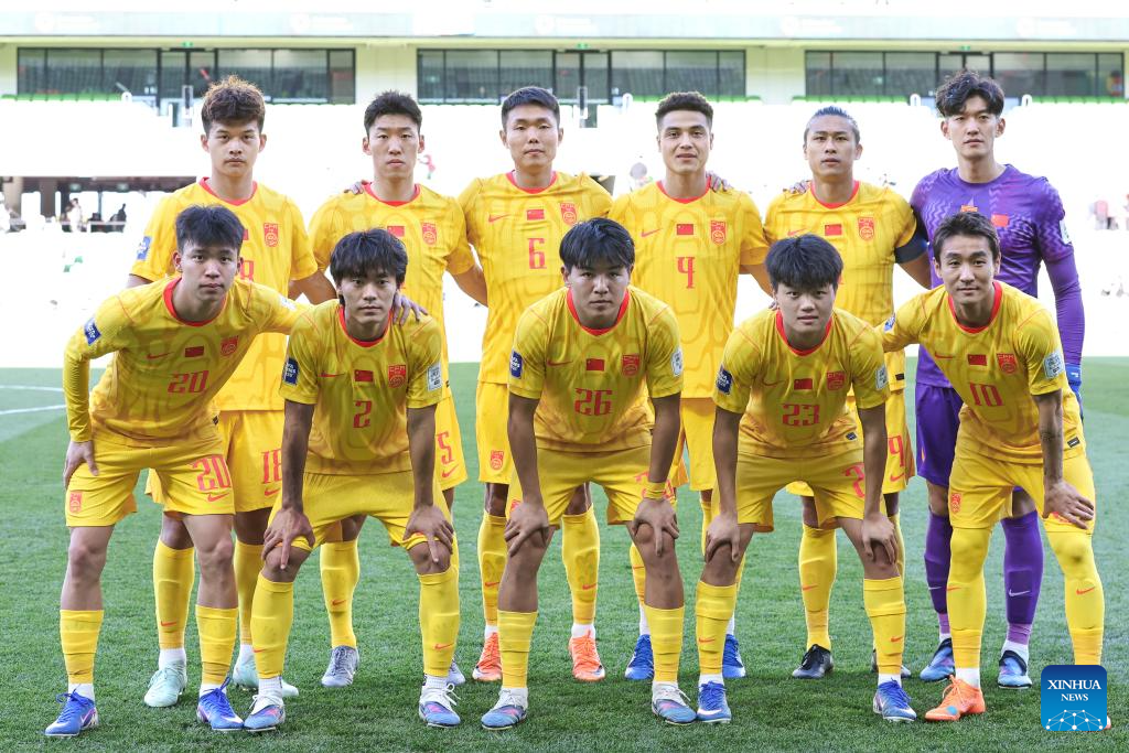 Starting players of China pose before the FIFA Series 2026 International Friendly Match between China and Cameroon in Melbourne, Australia, March 31, 2026. (Photo by Shu Zelin/Xinhua)