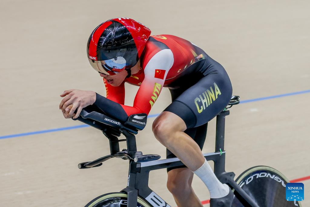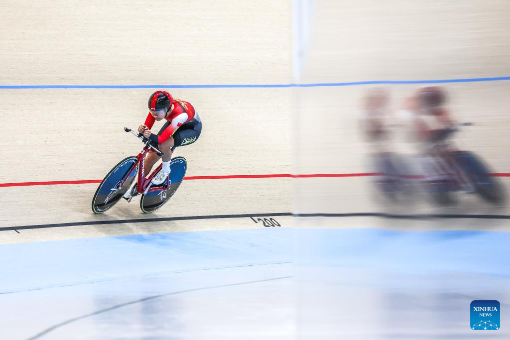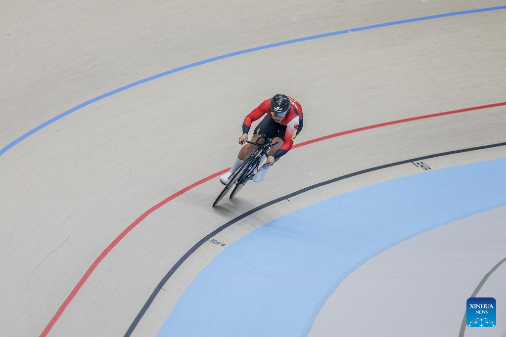 Xie Han of China competes during the men elite - 1km time trial qualification at the 2026 Asian Track Championships in Tagaytay City, the Philippines, on March 31, 2026. (Xinhua/Rouelle Umali)