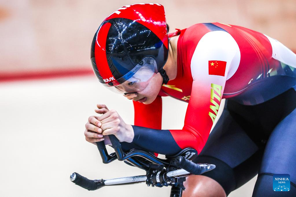 Ding Aonan of China competes during the women junior - individual pursuit qualification at the 2026 Asian Track Championships in Tagaytay City, the Philippines, on March 31, 2026. (Xinhua/Rouelle Umali)