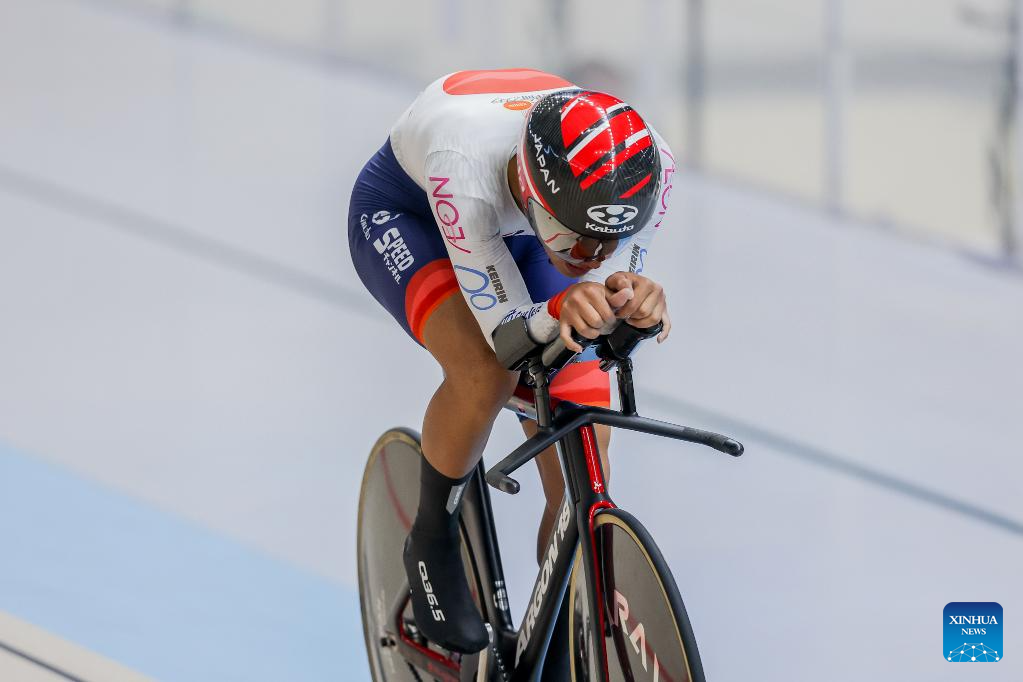 Ochiai Shun of Japan competes during the men junior - individual pursuit final at the 2026 Asian Track Championships in Tagaytay City, the Philippines, on March 31, 2026. (Xinhua/Rouelle Umali)