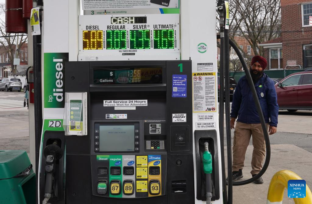 WASHINGTON, March 31 (Xinhua) -- Gas prices at U.S. pumps surged above 4 U.S. dollars a gallon for the first time since the summer of 2022, as the war in Iran leads to soaring oil costs, the Washington Post reported Tuesday. ■
