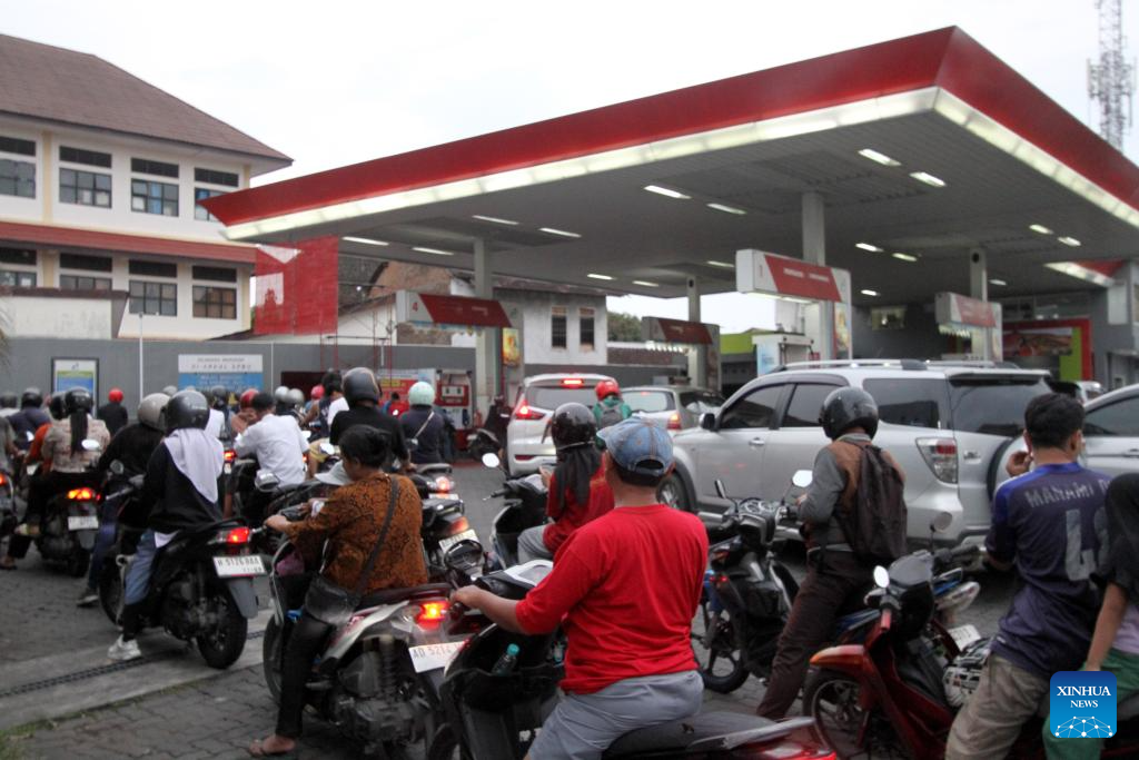 Vehicles wait in line to refuel at a gas station in Surakarta, Central Java, Indonesia, March 31, 2026. Indonesia is pushing a series of energy-saving measures to reduce fuel consumption and strengthen fiscal resilience amid rising global uncertainty triggered by the ongoing Middle East conflict, Coordinating Minister for Economic Affairs Airlangga Hartarto said on Tuesday. (Xinhua/Bram Selo)