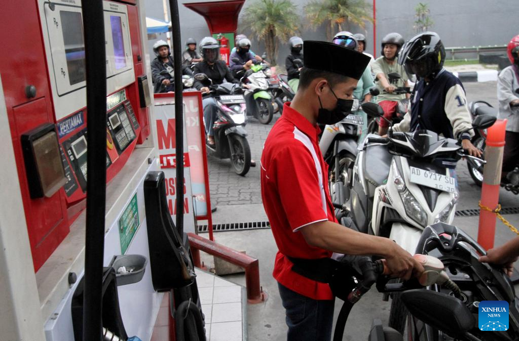 A staff member refuels a motorbike at a gas station in Surakarta, Central Java, Indonesia, March 31, 2026. Indonesia is pushing a series of energy-saving measures to reduce fuel consumption and strengthen fiscal resilience amid rising global uncertainty triggered by the ongoing Middle East conflict, Coordinating Minister for Economic Affairs Airlangga Hartarto said on Tuesday. (Xinhua/Bram Selo)