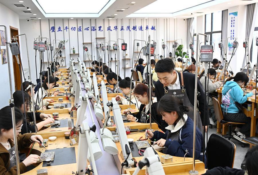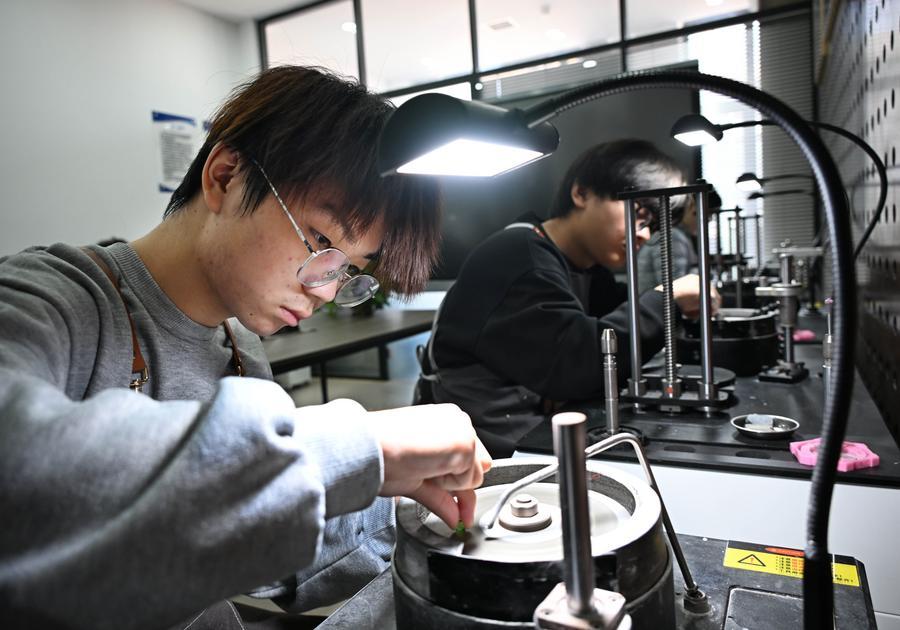 QINGDAO, April 1 (Xinhua) -- In recent years, the jewelry school of Qingdao Preschool Education College has integrated the practical process of the jewelry industry into its curriculum by utilizing on-campus training bases and production practice platforms.