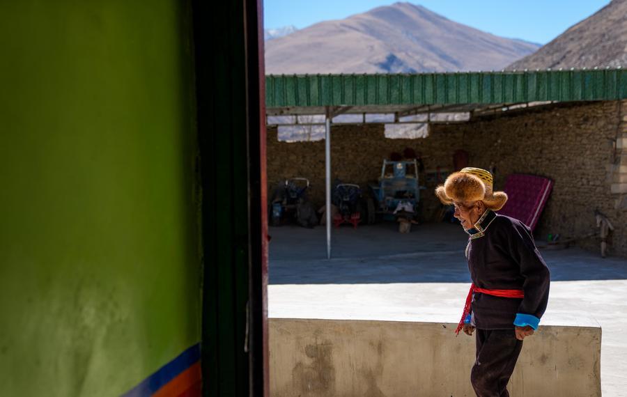 Padma Tashi strolls at home in Zhanang County, southwest China's Xizang Autonomous Region, March 26, 2026. (Xinhua/Tenzin Nyida)