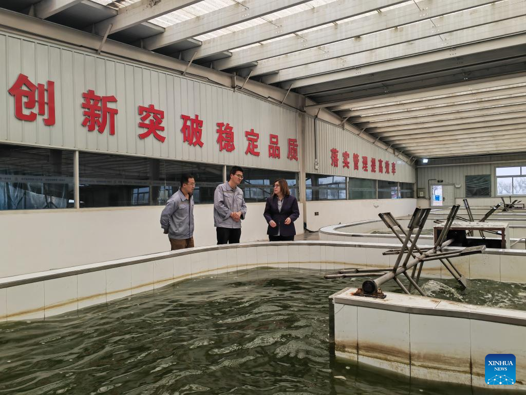 YINCHUAN, April 1 (Xinhua) -- Under the spring sun in Ningxia Hui Autonomous Region, northwest China, a once-barren stretch of saline-alkali land now shimmers with rows of greenhouses -- over 250 structures stretching like azure waves across the landscape.