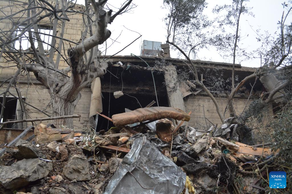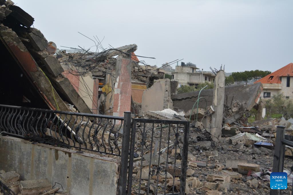 Photo taken on April 1, 2026, shows homes damaged by Israeli airstrikes in the city of Nabatieh in southern Lebanon. (Photo by Taher Abu Hamdan/Xinhua)
