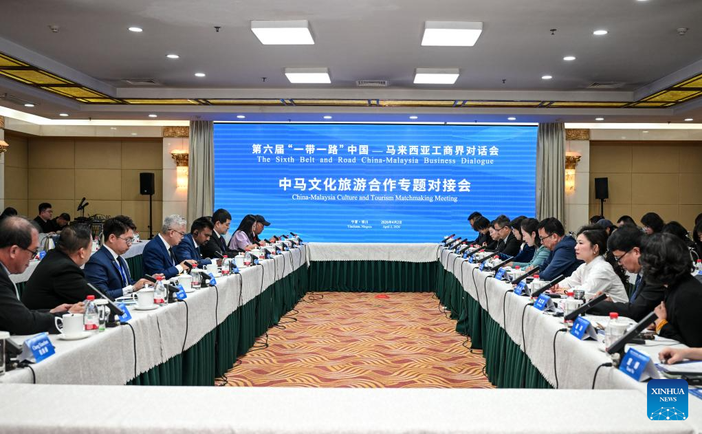 Guests attend the China-Malaysia Culture and Tourism Matchmaking Meeting during the Sixth Belt and Road China-Malaysia Business Dialogue in Yinchuan, northwest China's Ningxia Hui Autonomous Region, April 2, 2026. A total of 26 cooperation projects worth 495 million yuan (about 72 million U.S. dollars) were signed during the Sixth Belt and Road China-Malaysia Business Dialogue, which opened on Thursday in Yinchuan, capital of northwest China's Ningxia Hui Autonomous Region. (Xinhua/Feng Kaihua)