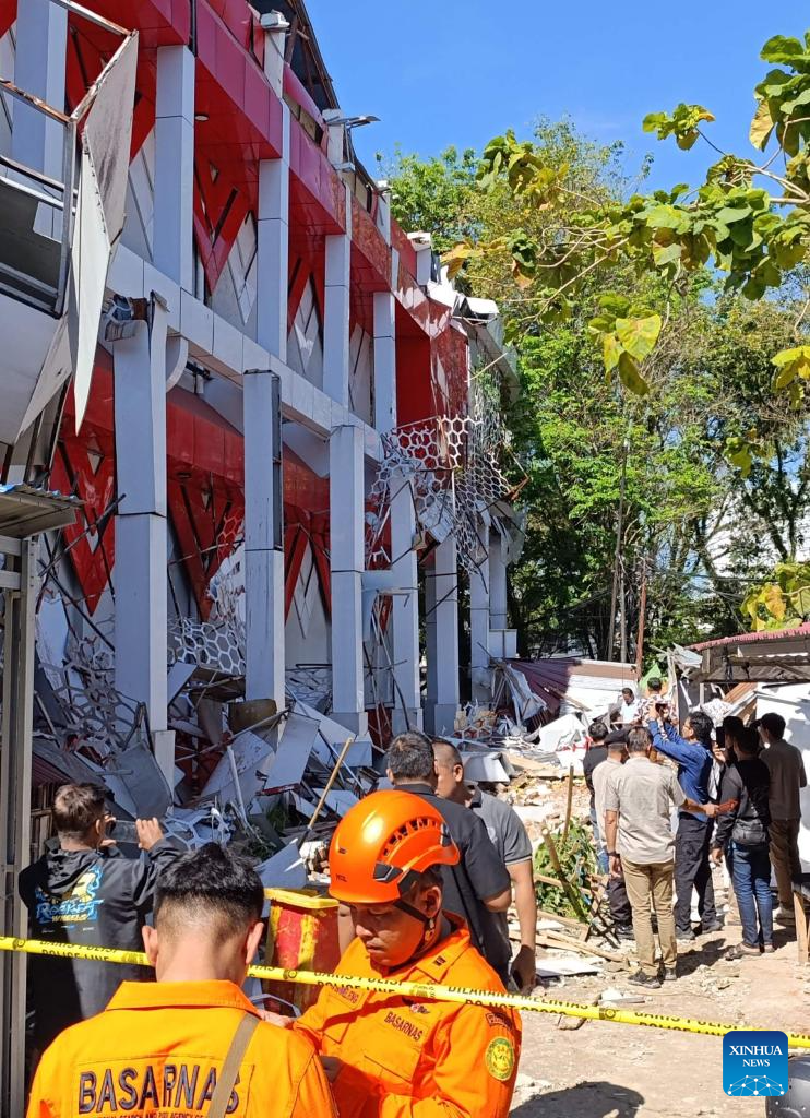 Rescuers work in the rubble of damaged buildings in Manado, North Sulawesi, Indonesia, April 2, 2026. Indonesia's Meteorology, Climatology and Geophysics Agency (BMKG) has lifted the tsunami early warning issued after a powerful 7.6-magnitude earthquake struck the Maluku region of eastern Indonesia on Thursday morning, following monitoring that showed no significant sea level changes.