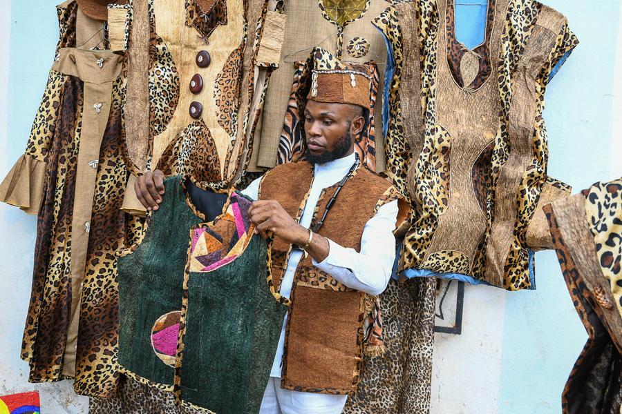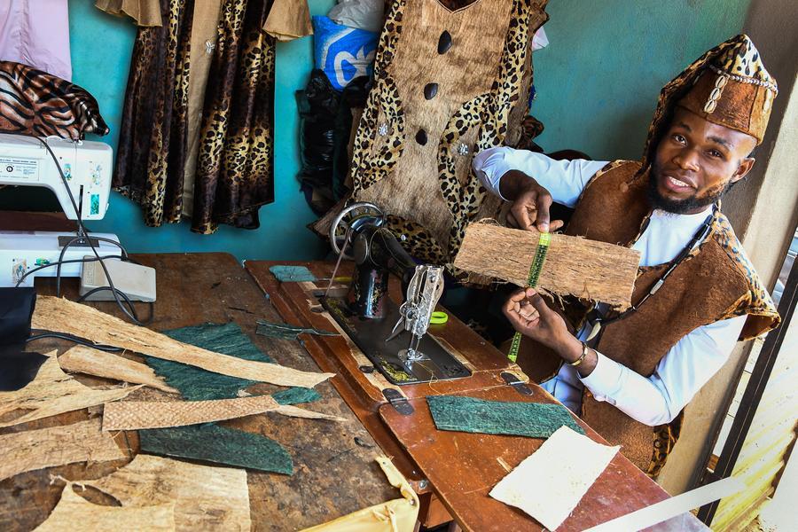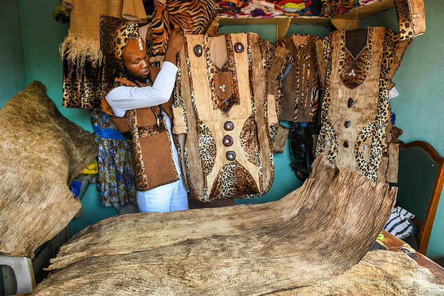 YAOUNDE, April 3 (Xinhua) -- Obom is a traditional fabric made from specific tree species by the Ekang people in Cameroon. The craft of making it is a significant part of the country's cultural heritage. Today, young Cameroonian designers are incorporating Obom into modern fashion designs.