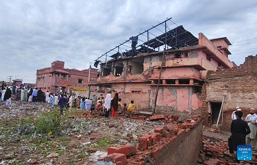 ISLAMABAD, April 3 (Xinhua) -- At least five civilians were killed and several others, including two police personnel, were injured in a blast near a police station in Pakistan's northwestern Khyber Pakhtunkhwa province on Thursday night, police said.