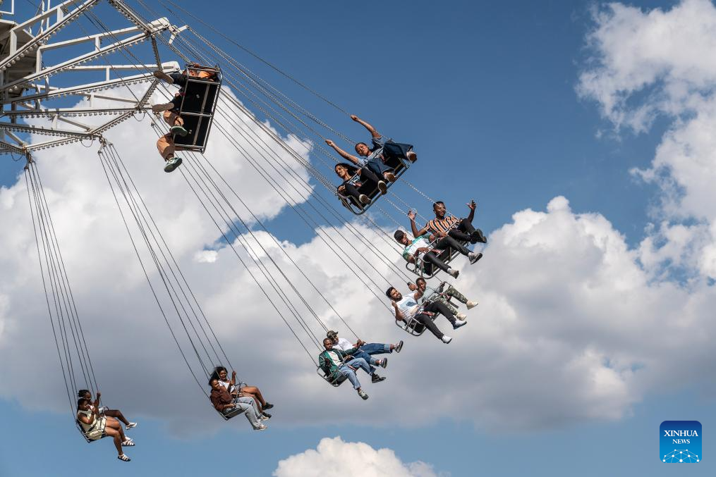 Visitors take an amusement ride during the Rand Show 2026 in Johannesburg, South Africa, April 2, 2026. The Rand Show, an annual entertainment and shopping extravaganza in South Africa, is held from April 2 to 6 at the Johannesburg Expo Center. (Photo by Shiraaz Mohamed/Xinhua)