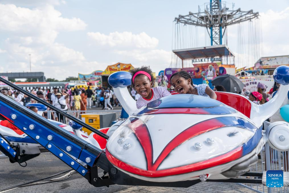 Children take an amusement ride during the Rand Show 2026 in Johannesburg, South Africa, April 2, 2026. The Rand Show, an annual entertainment and shopping extravaganza in South Africa, is held from April 2 to 6 at the Johannesburg Expo Center. (Photo by Shiraaz Mohamed/Xinhua)