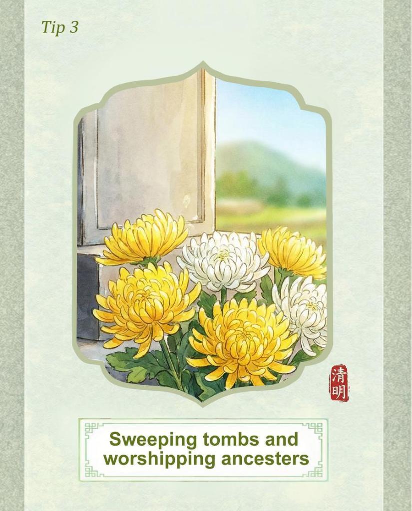 Qingming Festival, or Tomb Sweeping Day, is a traditional Chinese festival during which people pay tribute to the dead and worship their ancestors. The holiday also provides a short break for China's residents to engage in outdoor activities or go sightseeing. Here are some tips on how the Chinese observe Qingming.