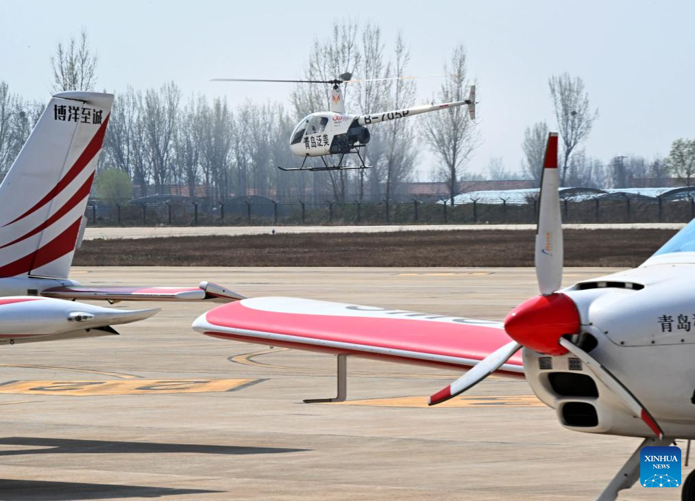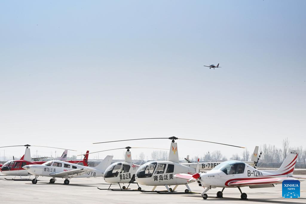 This photo taken on April 2, 2026 shows aircraft at Dianbu airport in Laixi City, east China's Shandong Province.