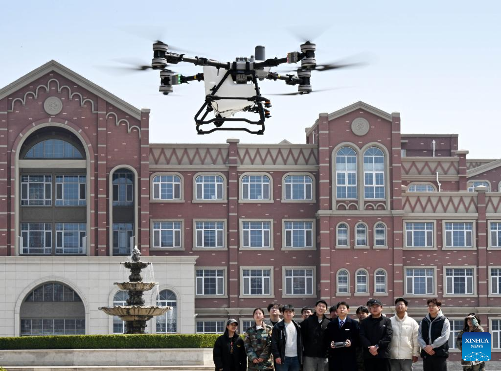 Students learn drone operation at Qingdao Vocational College of Aeronautical Science and Technology in Laixi City, east China's Shandong Province, April 2, 2026.