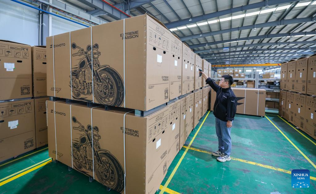 Staff members pack the motorcycles at the production workshop of ZXMOTO in Liangjiang New Area, southwest China's Chongqing, April 1, 2026.(Xinhua/Huang Wei)