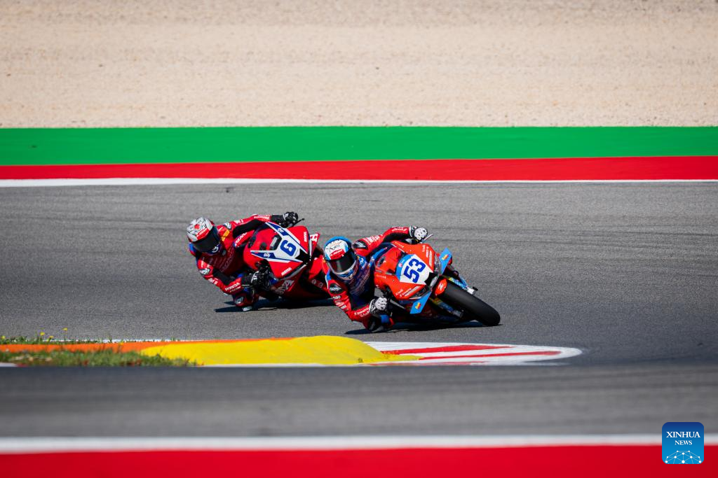 French rider Valentin Debise (R) riding a ZXMOTO motorcycle competes in the World Supersport (WorldSSP) category at the Portuguese round of the Superbike World Championship (WSBK) at the Portimao Circuit in Portugal, March 28, 2026.(Xinhua)