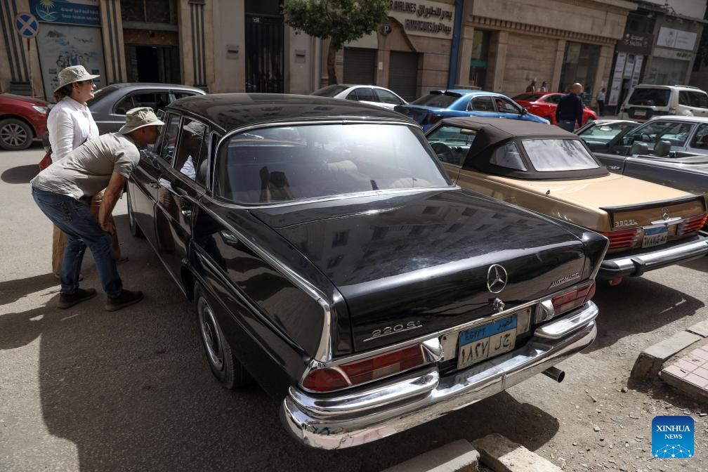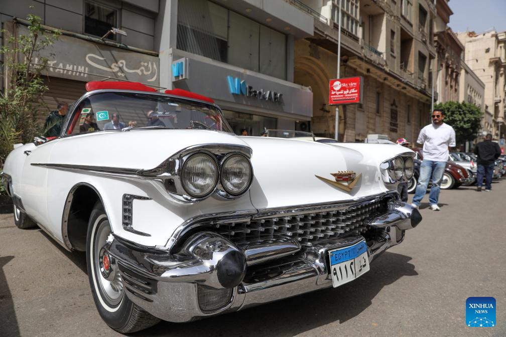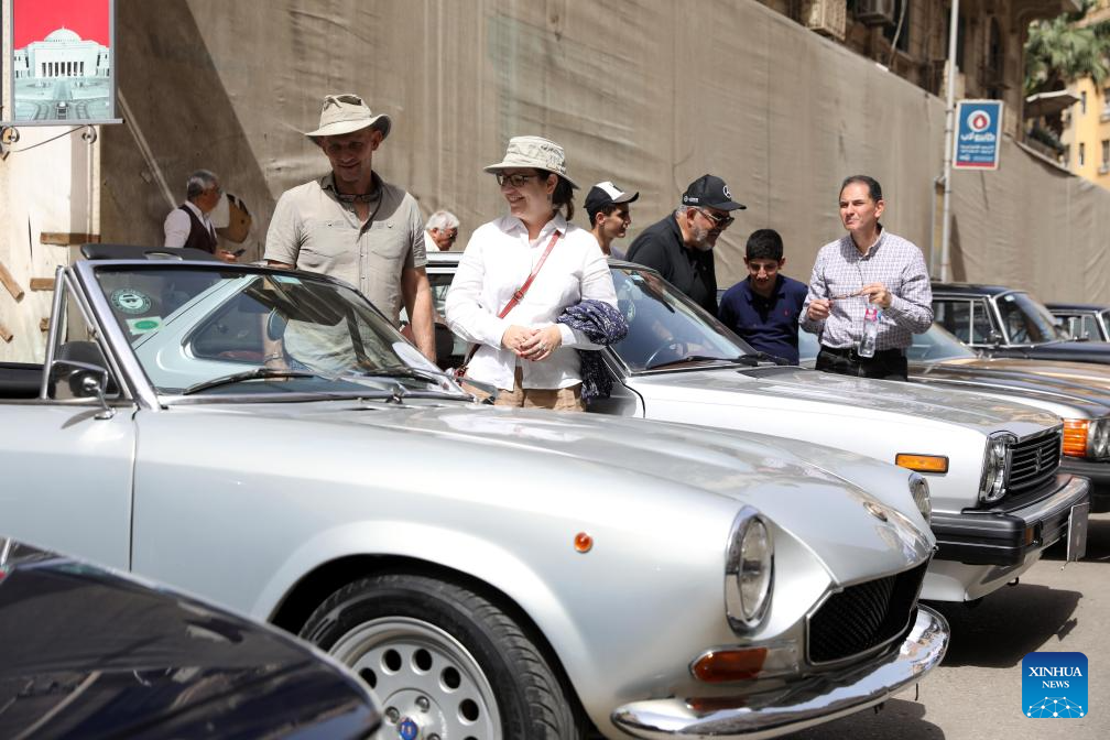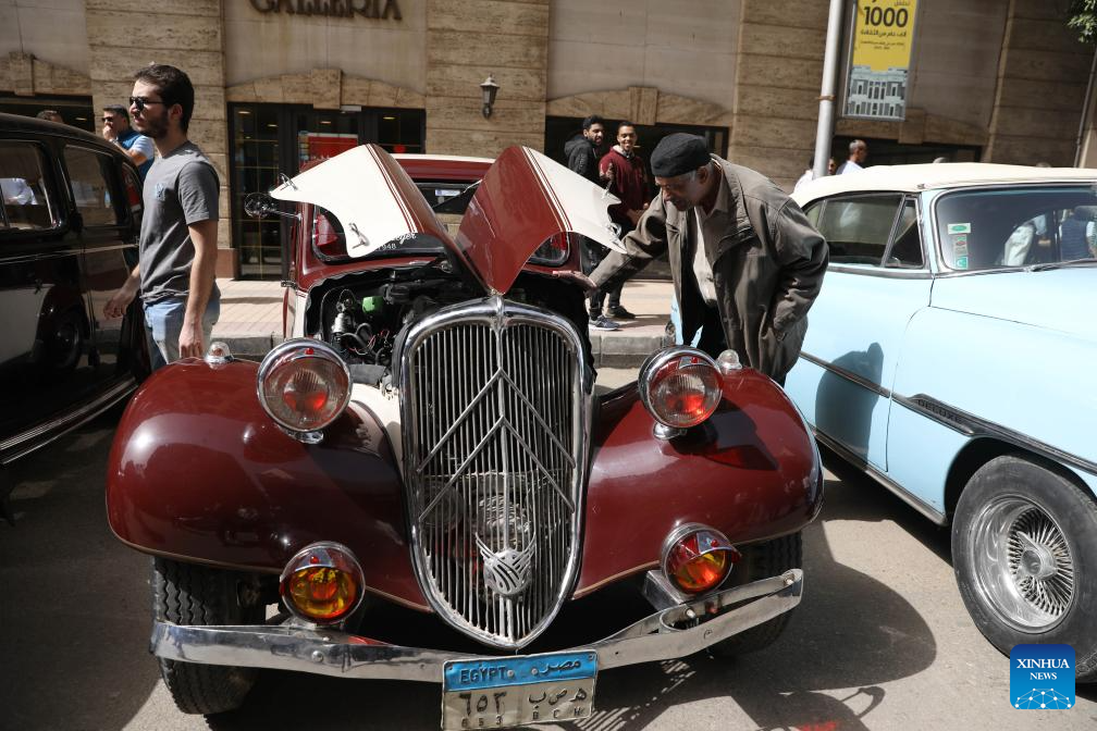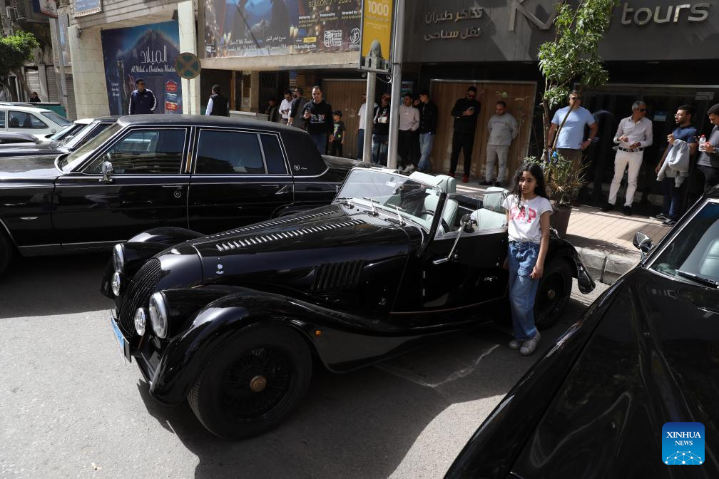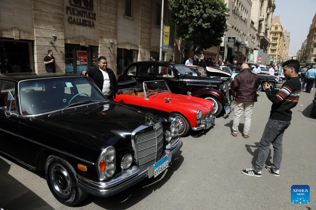 People visit a vintage car exhibition in Cairo, capital of Egypt, April 3, 2026. Dozens of rare vintage automobiles on Friday rolled through downtown Cairo, the capital of Egypt, turning historic streets into a living museum and offering a nostalgic tribute to the golden age of automotive design. (Xinhua/Ahmed Gomaa)