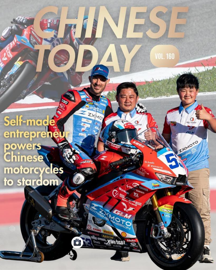 Zhang Xue, founder of Chinese motorcycle manufacturer ZXMOTO, receives an interview at the factory building of ZXMOTO in Liangjiang New Area, southwest China's Chongqing, April 1, 2026. (Xinhua/Huang Wei)French rider Valentin Debise (R) riding a ZXMOTO motorcycle competes in the World Supersport (WorldSSP) category at the Portuguese round of the Superbike World Championship (WSBK) at the Portimao Circuit in Portugal, March 28, 2026. (Xinhua)Staff members conduct a pre-race inspection on the two competing motorcycles of ZXMOTO before the World Supersport (WorldSSP) category at the Portuguese round of the Superbike World Championship (WSBK) at the Portimao Circuit in Portugal, March 27, 2026. (Xinhua)Staff members operate on an assembly line at the production workshop of ZXMOTO in Liangjiang New Area, southwest China's Chongqing, April 1, 2026. (Xinhua/Huang Wei)Staff members conduct inspections on motorcycles at the production workshop of ZXMOTO in Liangjiang New Area, southwest China's Chongqing, April 1, 2026. (Xinhua/Huang Wei)Staff members operate on an assembly line at the production workshop of ZXMOTO in Liangjiang New Area, southwest China's Chongqing, April 1, 2026. (Xinhua/Huang Wei)