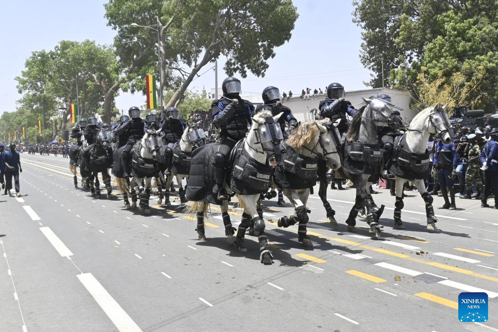 DAKAR, April 4 (Xinhua) -- Senegal on Saturday marked the 66th anniversary of its independence with celebrations held across the country, highlighted by a grand civil-military parade presided over by President Bassirou Diomaye Faye in the central city of Thies, about 70 km east of the country's capital, Dakar.