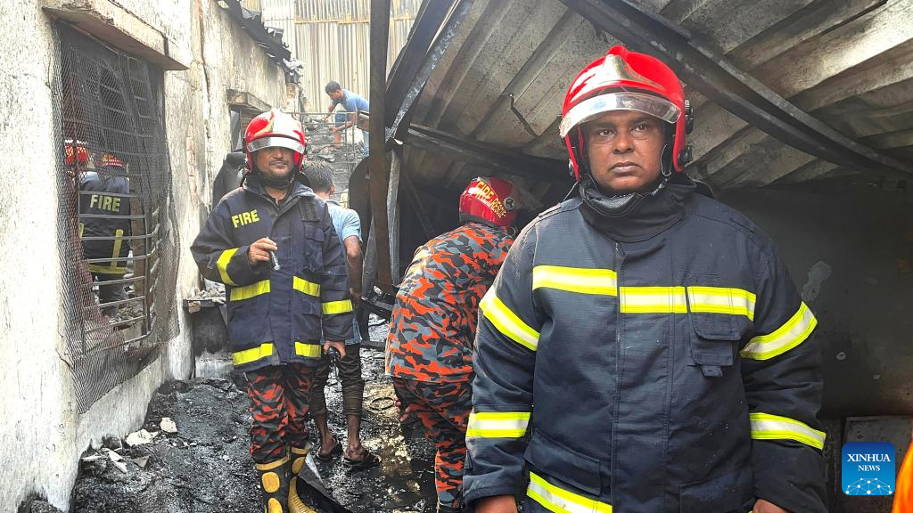DHAKA, April 4 (Xinhua) -- A massive fire swept through a tin-shed factory manufacturing gas lighters in Keraniganj on the outskirts of Bangladesh's capital Dhaka on Saturday afternoon, killing at least five people, an official said.