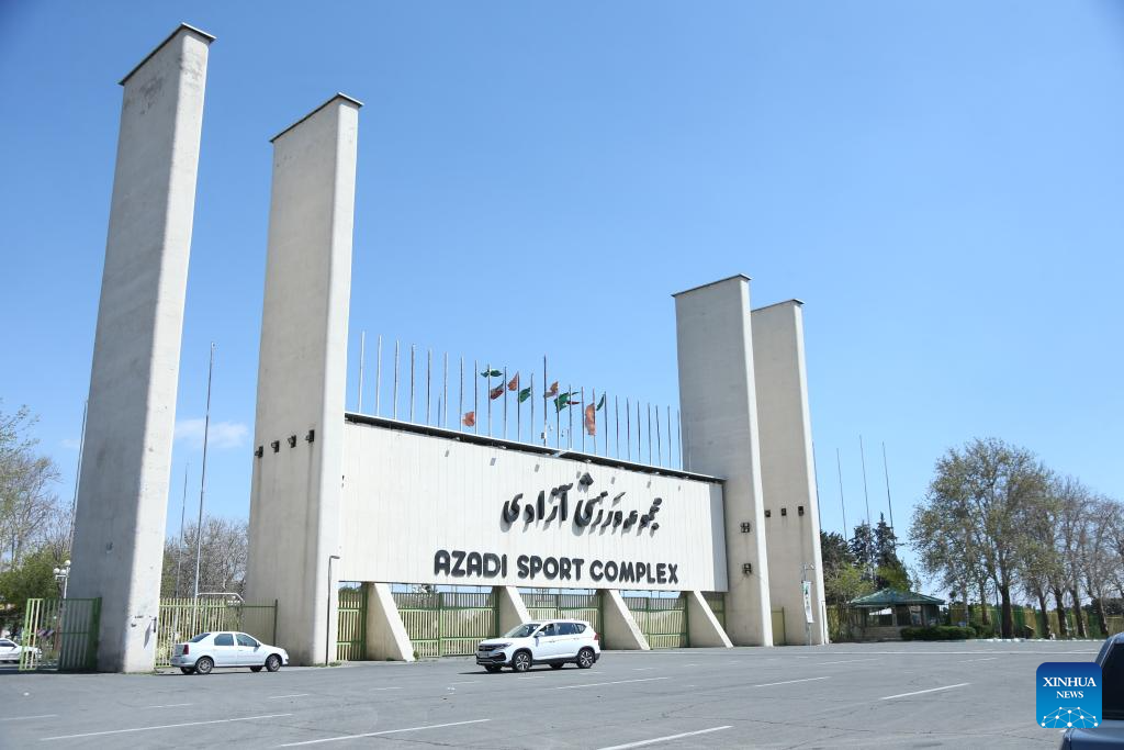 This photo taken on April 3, 2026 shows a view of the gate of the Azadi Sports Complex in Tehran, Iran. The 12,000-seater sports stadium was destroyed in a U.S.-Israeli strike on March 5. (Xinhua/Shadati)