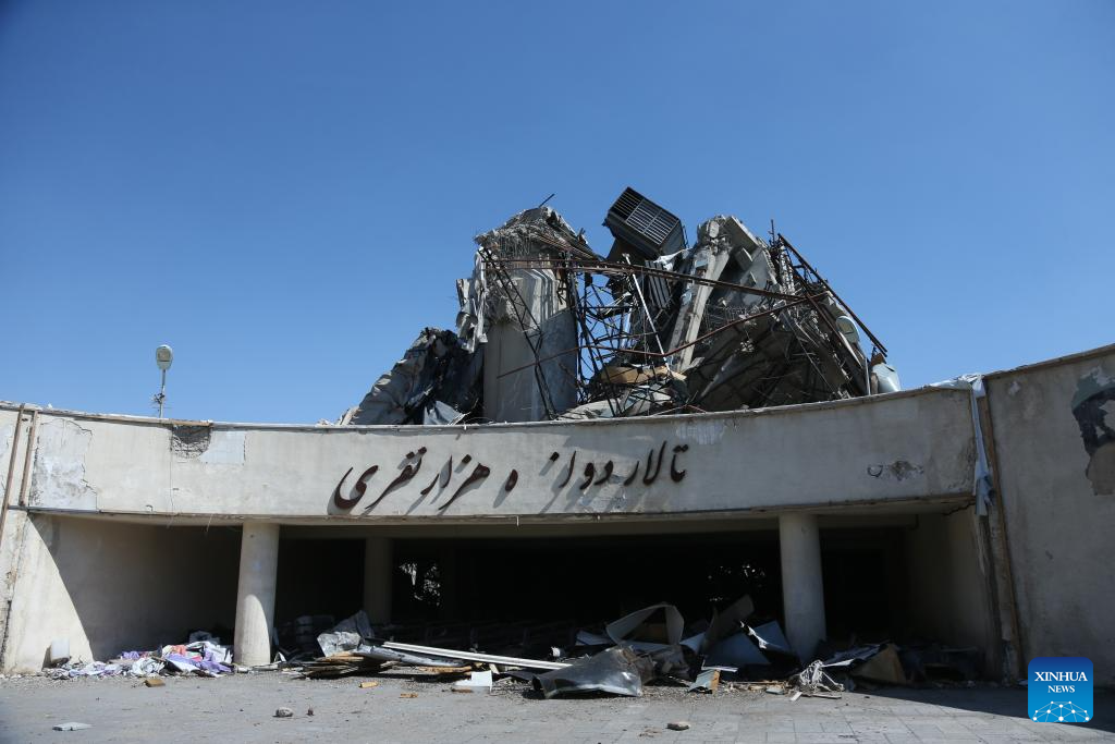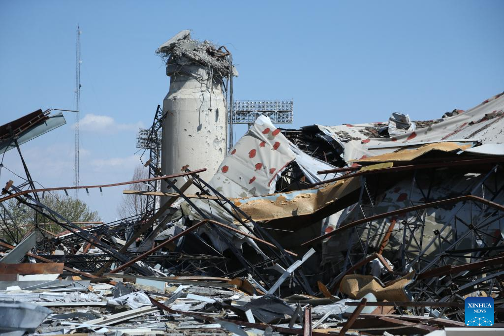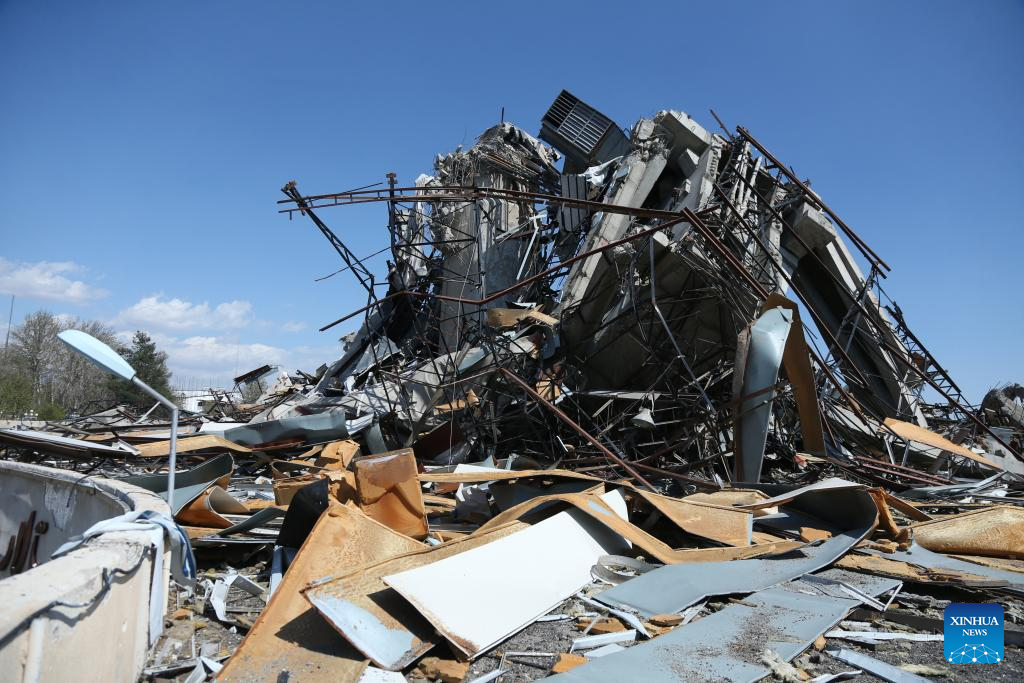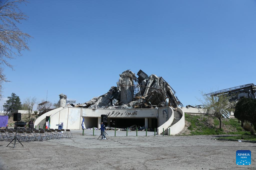 This photo taken on April 3, 2026 shows a view of a destroyed sports stadium inside the Azadi Sports Complex in Tehran, Iran. The 12,000-seater sports stadium was destroyed in a U.S.-Israeli strike on March 5. (Xinhua/Shadati)