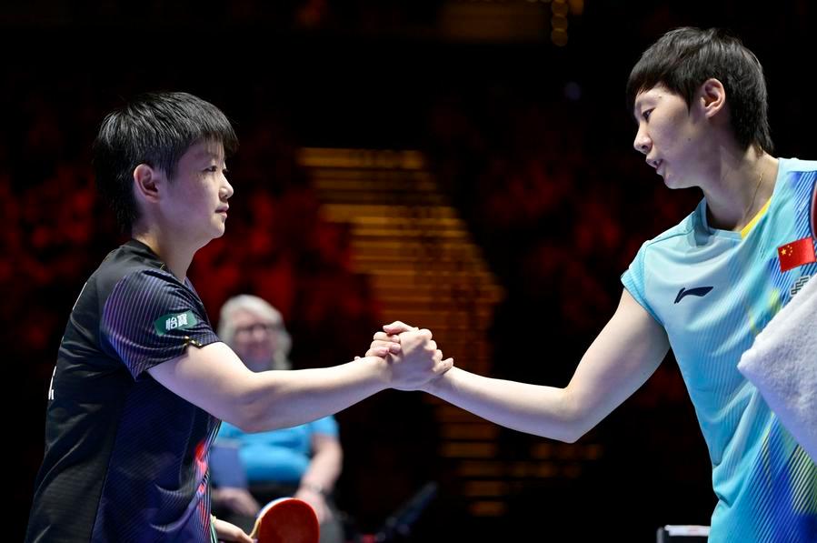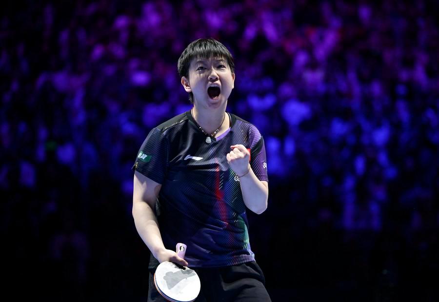 MACAO, April 5 (Xinhua) -- Chinese table tennis stars Sun Yingsha and Wang Chuqin capped a dramatic week at the ITTF World Cup with landmark victories at Galaxy Arena in Macao, China on Sunday.