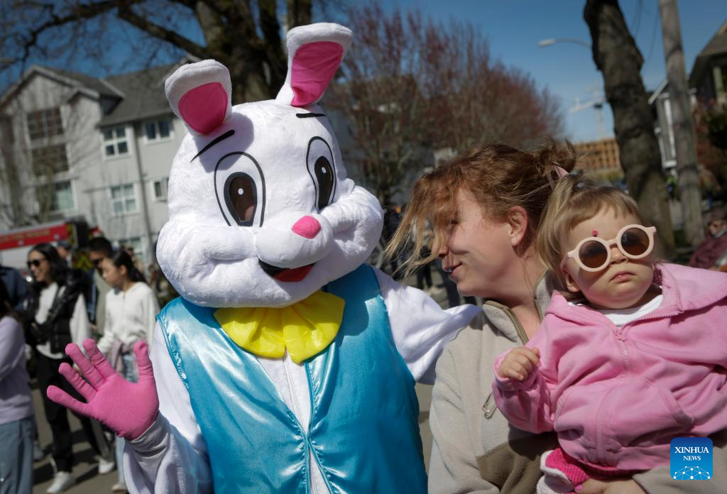 People take part in the annual Easter Parade at Ladner Village in Delta, British Columbia, Canada, on April 5, 2026. The annual Easter event, a community tradition of more than 60 years, featured a festive parade and family-oriented activities, drawing local residents to celebrate the holiday. (Photo by Liang Sen/Xinhua)