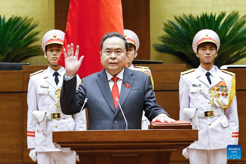 Tran Thanh Man is sworn in as Vietnam's National Assembly chairman in Hanoi, Vietnam, April 6, 2026. Vietnam's National Assembly (NA) on Monday elected Tran Thanh Man, chairman of the 15th parliament, to lead the country's top legislature for its 16th tenure.