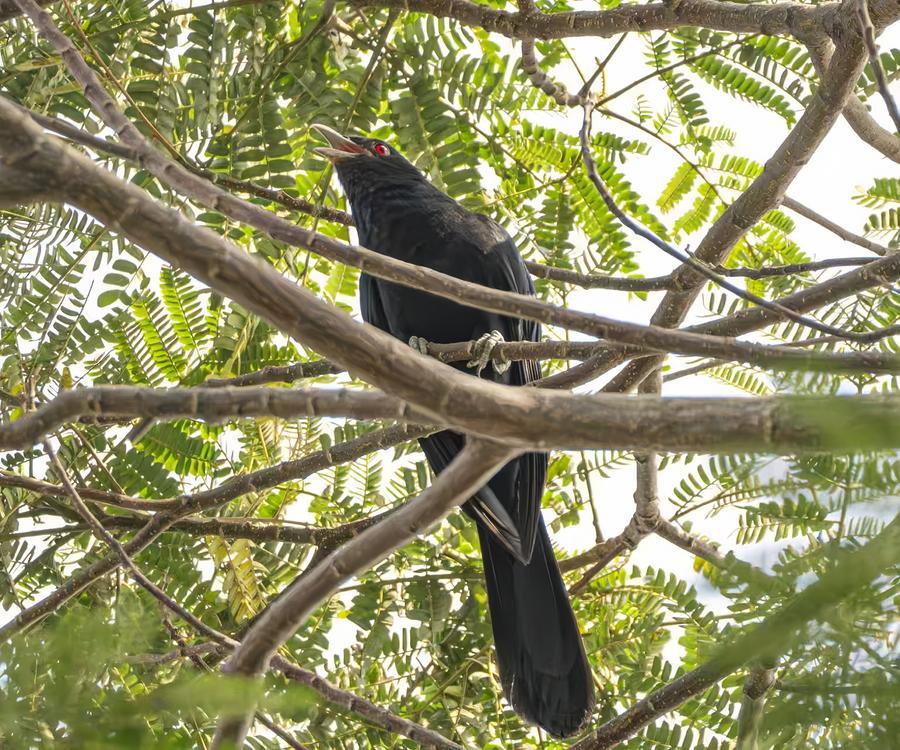 The noisemakers are koels, a species of black, red-eyed birds protected under China's wildlife law. In Chinese, the creature is named "Zaojuan," meaning "noisy cuckoo." As the name suggests, its piercing call can reach up to 80 decibels, as loud as a vacuum cleaner.