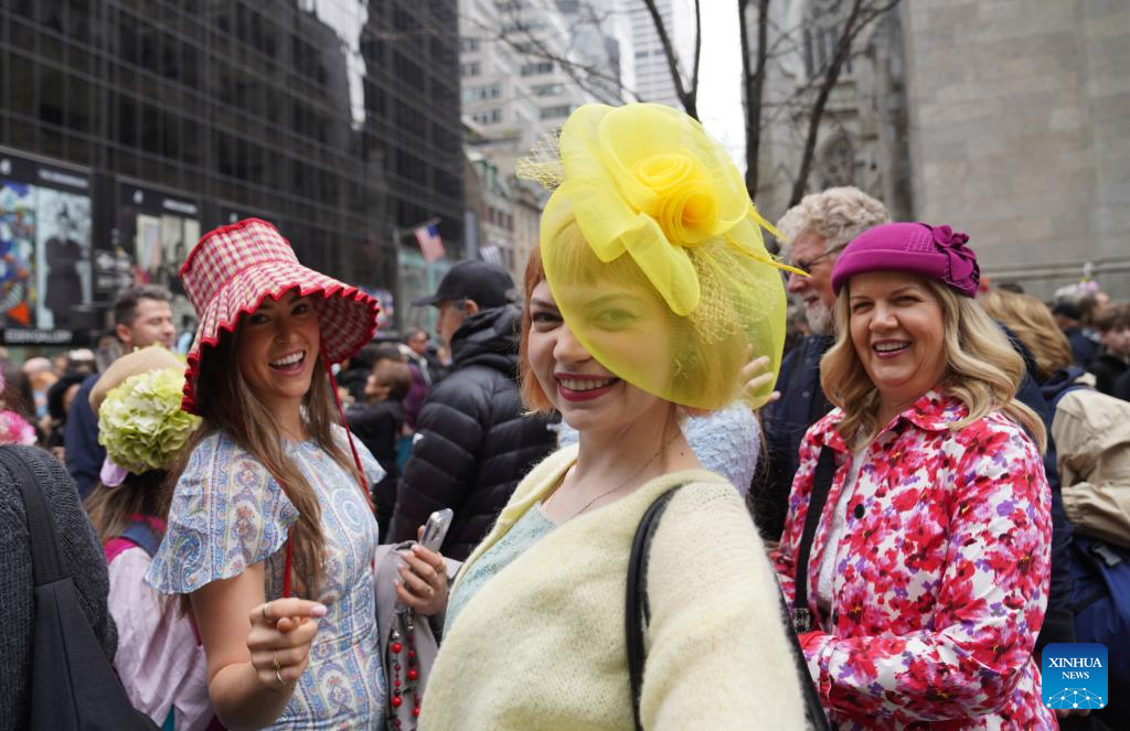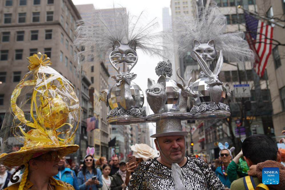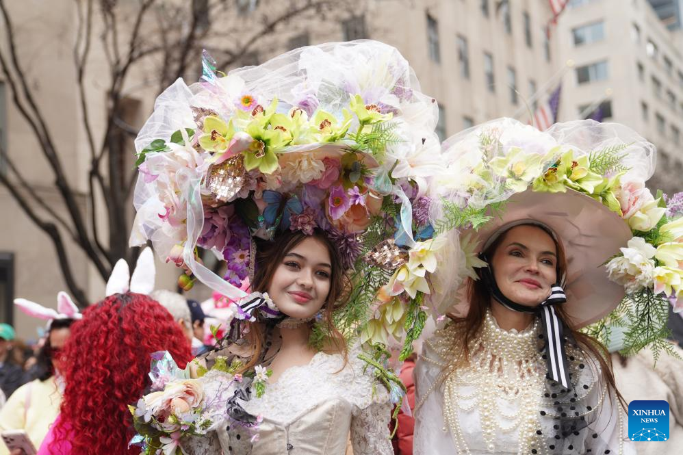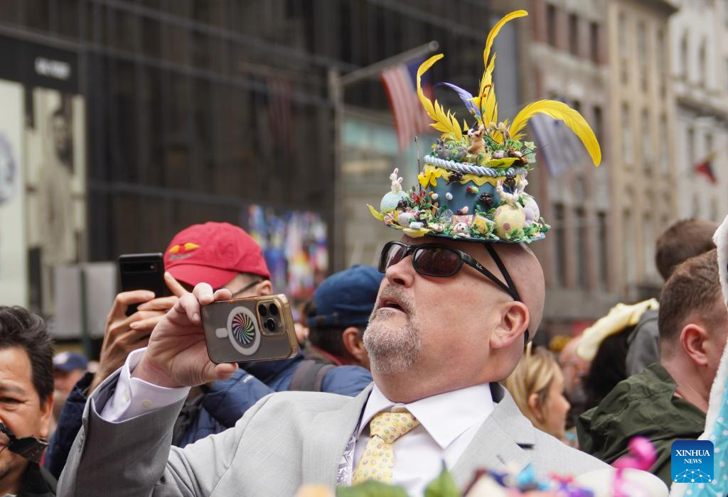 People attend the Easter Parade and Bonnet Festival in New York, the United States, on April 5, 2026. The annual Easter Parade and Bonnet Festival was held in New York City on Sunday, attracting thousands of visitors to see extravagant, hand-crafted hats to celebrate Easter and greet spring. (Xinhua/Zhang Fengguo)