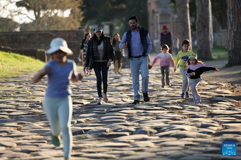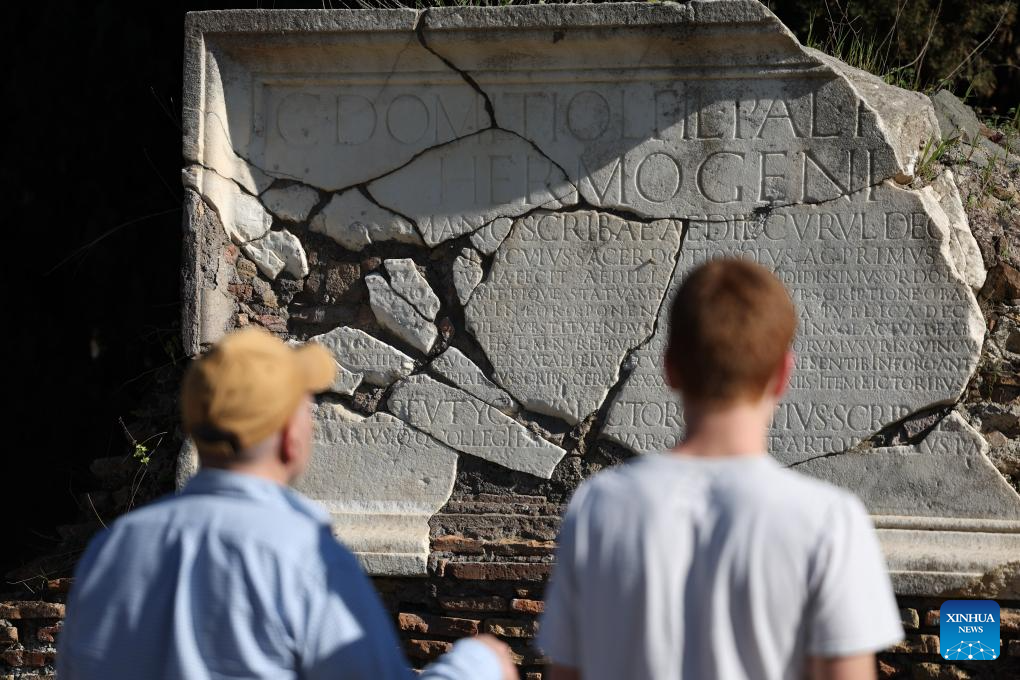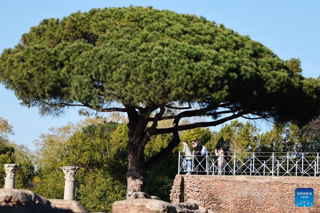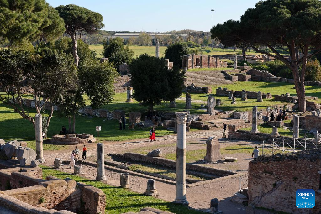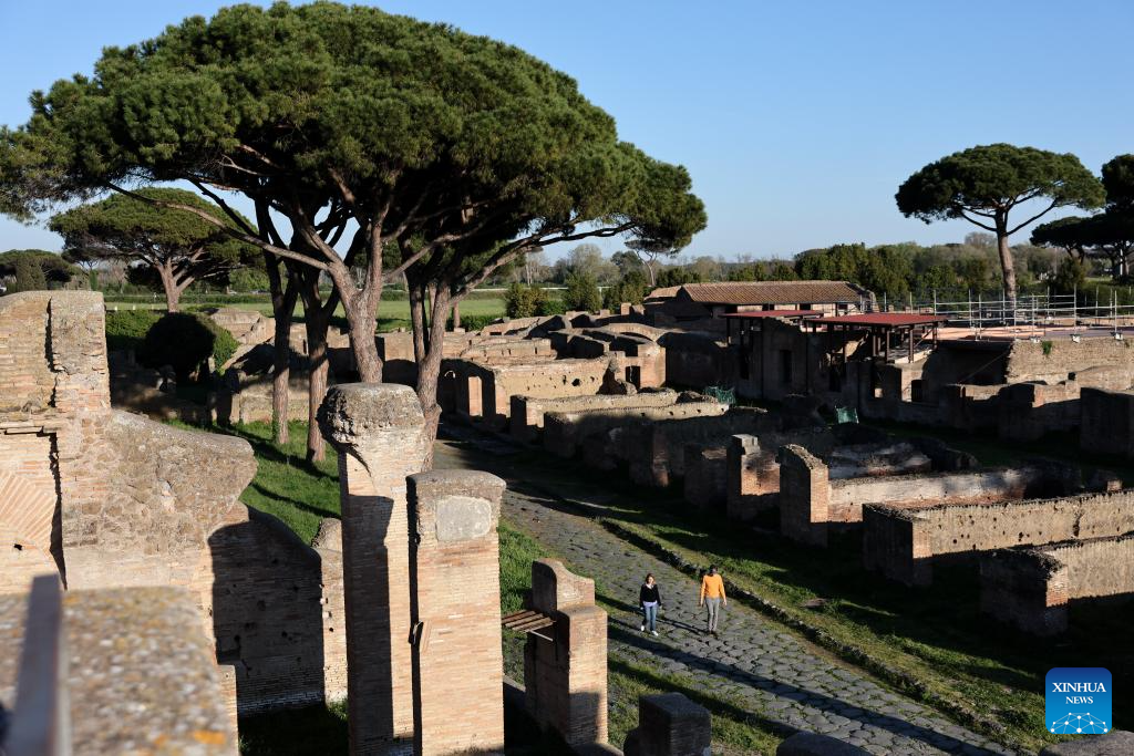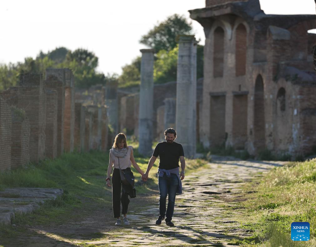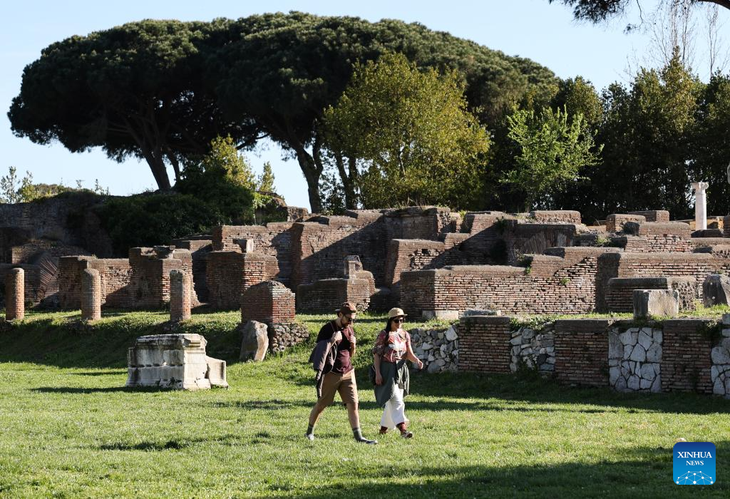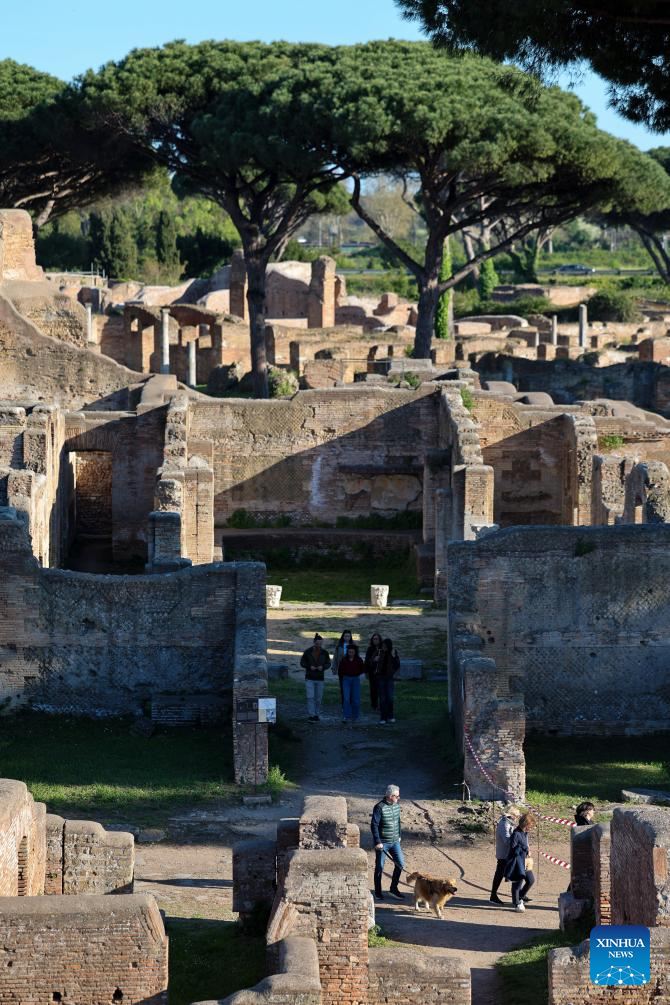 People visit the Archaeological Park of Ostia Antica in Rome, Italy, April 5, 2026. Most of the museums and state archaeological sites across Italy opened their doors for free on Sunday as part of the monthly "Sunday at the Museum" initiative. (Xinhua/Li Jing)