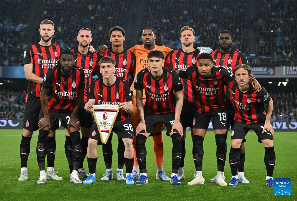 Players of AC Milan pose for photos before a Serie A football match between Napoli and AC Milan in Naples, Italy, April 6, 2026. (Photo by Alberto Lingria/Xinhua)