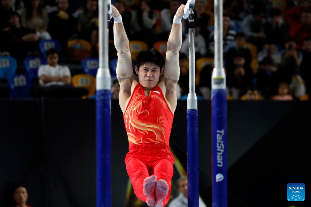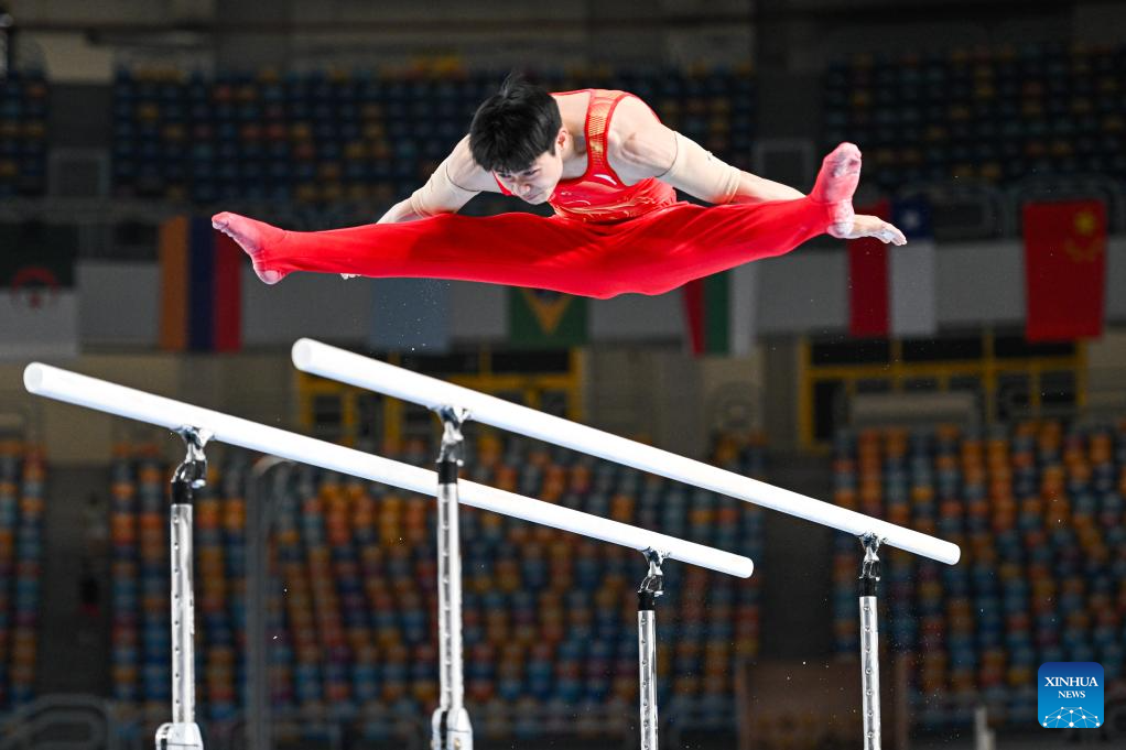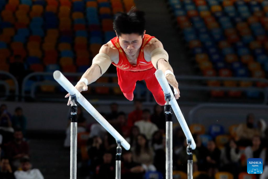 China then added its second gold of the day through Liu Yang in the men's parallel bars final, while Egypt's Mohamed Afify secured silver for the host nation and neutral athlete Arsenii Dukhno took bronze.