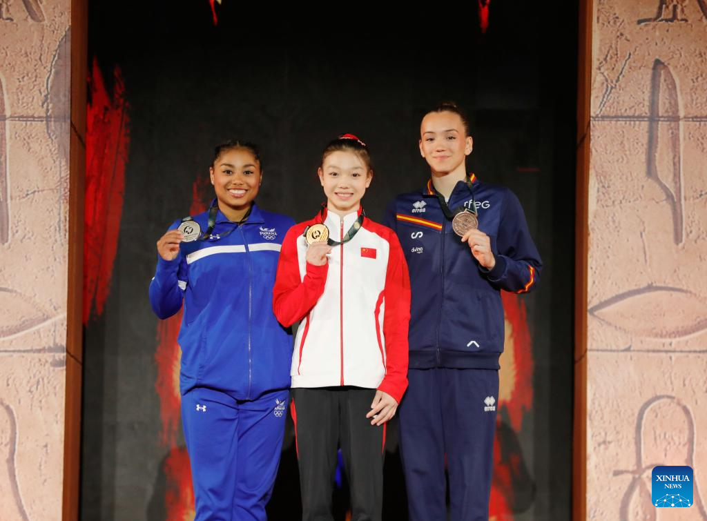 CAIRO, April 6 (Xinhua) -- China led the gold tally at the 2026 Artistic Gymnastics Apparatus World Cup in Cairo as the competition concluded on Monday, winning three of the five titles decided on the final day.