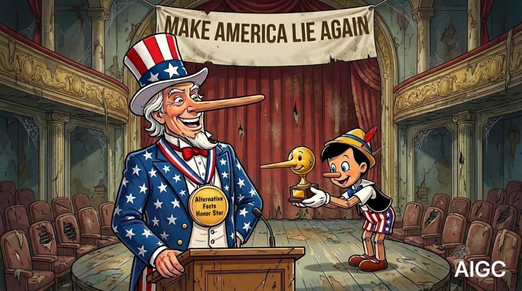 The new national slogan. Uncle Pinocchio and his alternative facts take the stage.