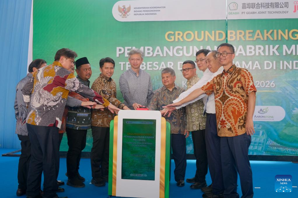 A groundbreaking ceremony for Indonesia's first melamine project, invested by PT GEABH Joint Technology, is held in the Gresik Special Economic Zone, East Java Province, Indonesia, April 8, 2026.(Xinhua/Li Jiacong)