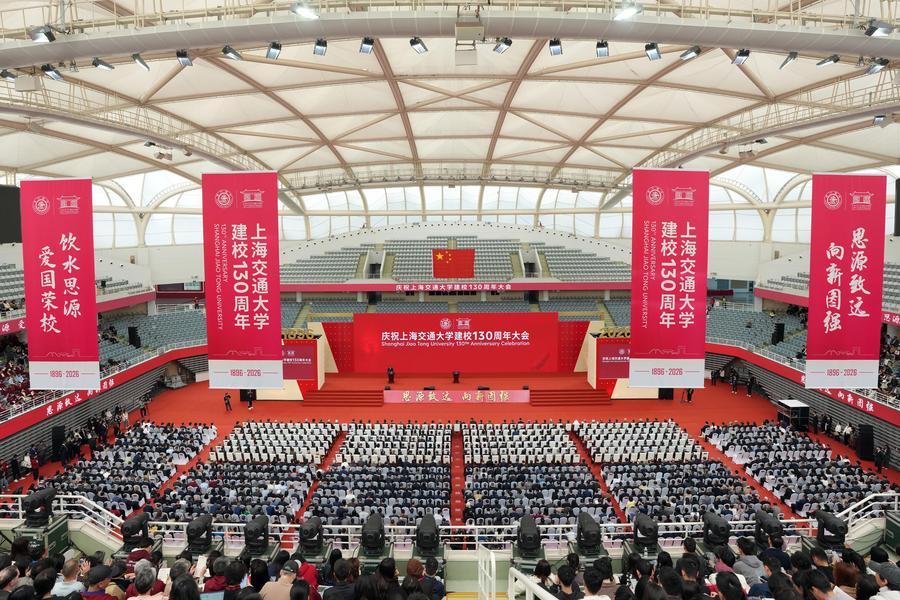 This photo taken on April 8, 2026 shows an installation marking the 130th anniversary of Shanghai Jiao Tong University (SJTU) in front of a gate of its Minhang campus in Shanghai, east China. (Xinhua/Liu Ying)Ding Kuiling, president of Shanghai Jiao Tong University (SJTU), speaks at a ceremony marking the SJTU's 130th anniversary at its Minhang campus in Shanghai, east China, April 8, 2026. (Xinhua/Liu Ying)Long Lehao, a renowned rocket expert and an alumnus of Shanghai Jiao Tong University (SJTU), speaks at a ceremony marking the SJTU's 130th anniversary at its Minhang campus in Shanghai, east China, April 8, 2026. (Xinhua/Liu Ying)Alumni of Shanghai Jiao Tong University (SJTU) attend a ceremony marking the SJTU's 130th anniversary at its Minhang campus in Shanghai, east China, April 8, 2026. (Xinhua/Liu Ying)Alumni of Shanghai Jiao Tong University (SJTU) pose for photos at SJTU's Minhang campus in Shanghai, east China, April 8, 2026. (Xinhua/Liu Ying)■