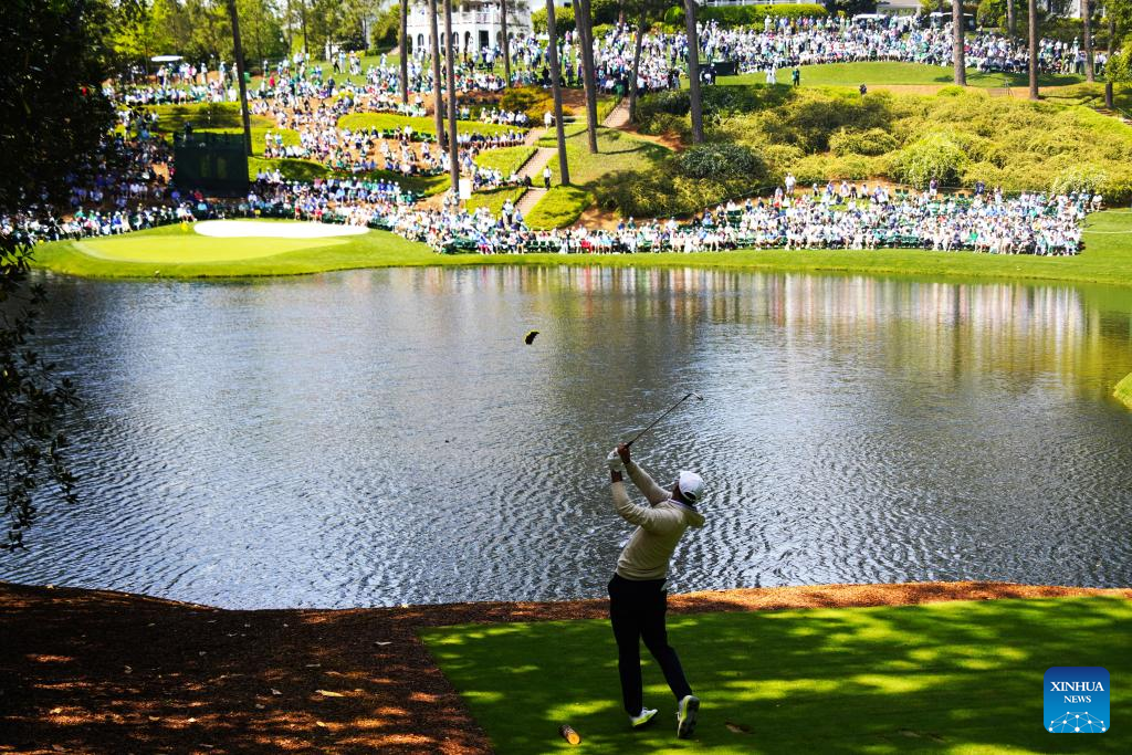 Scottie Scheffler of the United States hits his tee off during the par 3 contest of the 2026 Masters golf tournament at Augusta National Golf Club, in Augusta, the United States, on April 8, 2026. (Xinhua/Wu Xiaoling)
