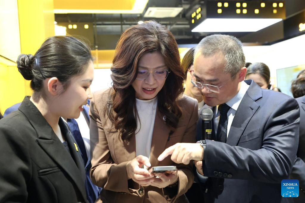 Cheng Li-wun, chairwoman of the Chinese Kuomintang (KMT) party, tries to order on Meituan, an on-demand delivery platform, in Shanghai, east China, April 8, 2026.