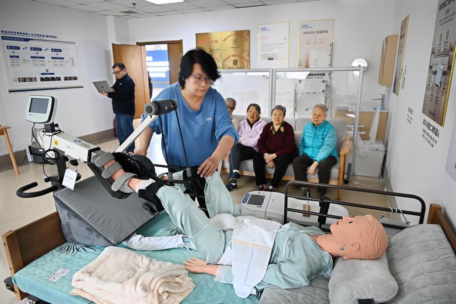 A trainer guides a robot in grasping objects at Qingdao Training Center for Elderly Care Robots in Qingdao, east China's Shandong Province, April 9, 2026. (Xinhua/Li Ziheng)An elderly person interacts with a robot at Qingdao Training Center for Elderly Care Robots in Qingdao, east China's Shandong Province, April 9, 2026. (Xinhua/Li Ziheng)A staff member demonstrates the functions of a rehabilitation robot at Qingdao Training Center for Elderly Care Robots in Qingdao, east China's Shandong Province, April 9, 2026. (Xinhua/Li Ziheng)Staff members test walking assistance robots at Qingdao Training Center for Elderly Care Robots in Qingdao, east China's Shandong Province, April 9, 2026. (Xinhua/Li Ziheng)A staff member prepares to test an exoskeleton robot for adult users at Qingdao Training Center for Elderly Care Robots in Qingdao, east China's Shandong Province, April 9, 2026. (Xinhua/Li Ziheng)An elderly person experiences a brain-computer interface (BCI) device at Qingdao Training Center for Elderly Care Robots in Qingdao, east China's Shandong Province, April 9, 2026. (Xinhua/Li Ziheng)Staff members train robots at Qingdao Training Center for Elderly Care Robots in Qingdao, east China's Shandong Province, April 9, 2026. (Xinhua/Li Ziheng)An elderly person interacts with a robot at Qingdao Training Center for Elderly Care Robots in Qingdao, east China's Shandong Province, April 9, 2026. (Xinhua/Li Ziheng)■