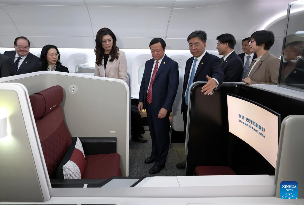 Cheng Li-wun, chairwoman of the Chinese Kuomintang (KMT) party, leads a KMT delegation in a visit to the Commercial Aircraft Corporation of China (COMAC) in Shanghai, east China, April 9, 2026. (Xinhua/Xing Guangli)