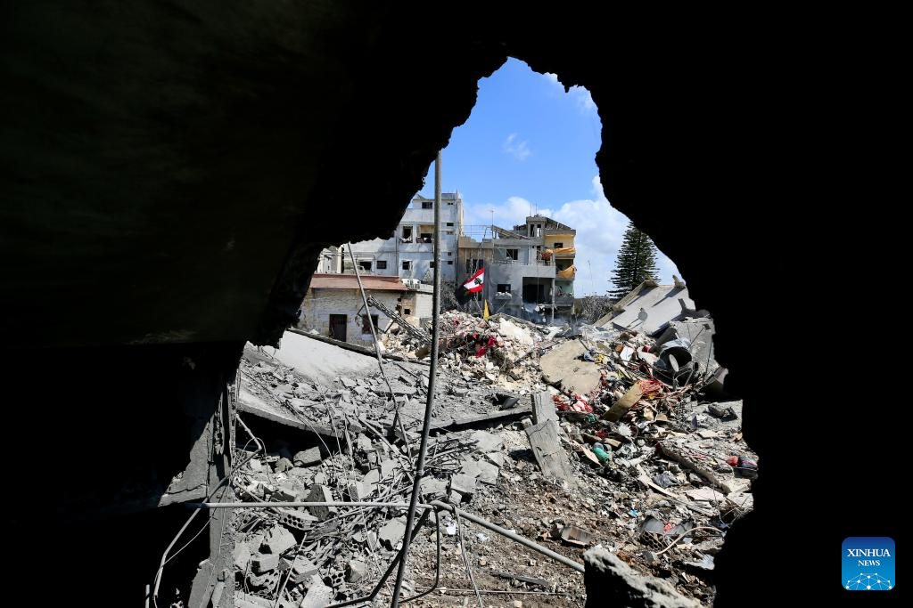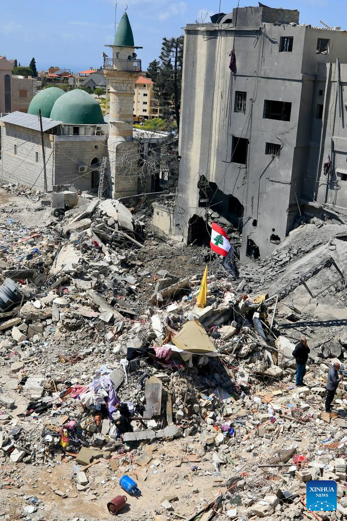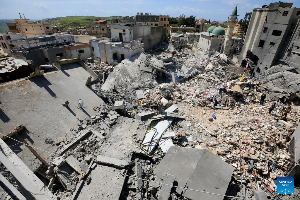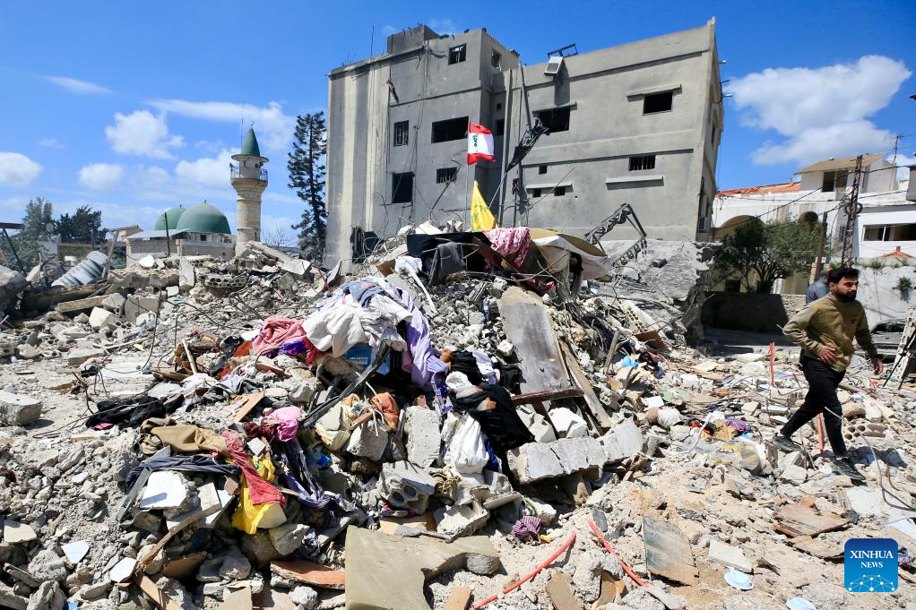 Photo taken on April 9, 2026 shows buildings destroyed by Israeli airstrikes in Zrariyeh, southern Lebanon. The death toll from Israel's Wednesday attacks across Lebanon has risen to 303, the Lebanese Health Ministry said Thursday. (Photo by Ali Hashisho/Xinhua)