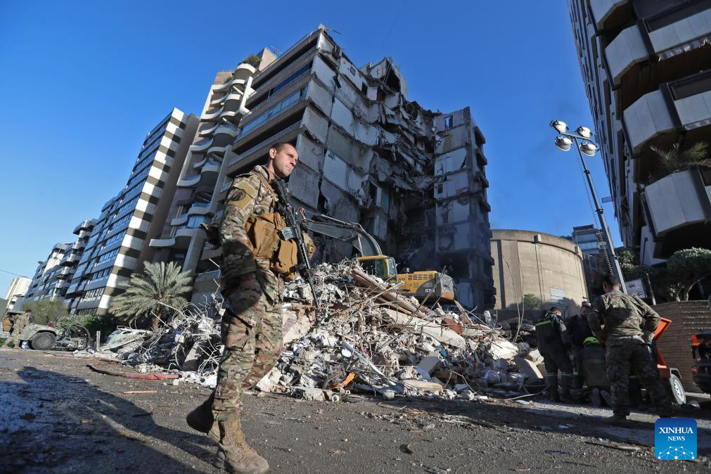 This photo taken on April 9, 2026 shows a building destroyed by Israeli airstrikes in Beirut, Lebanon. The death toll from Israel's Wednesday attacks across Lebanon has risen to 303, with 1,150 injured, according to a preliminary toll released Thursday by the Lebanese Ministry of Public Health. (Photo by Bilal Jawich/Xinhua)