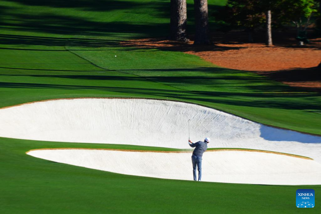 Li Haotong of China watches his tee shot during the round 1 of the 2026 Masters golf tournament at Augusta National Golf Club in Augusta, the United States, on April 9, 2026. (Xinhua/Wu Xiaoling)