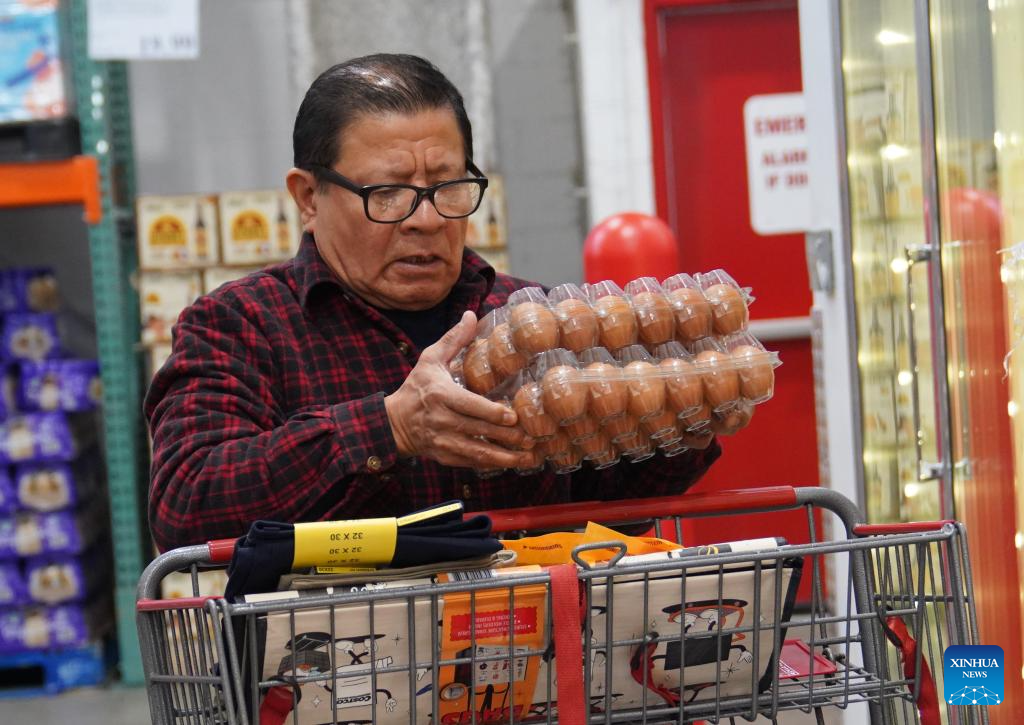 A man shops at a supermarket in New York, the United States, on April 10, 2026. Earlier on Friday, the U.S. Bureau of Labor Statistics reported that the consumer price index in March rose 0.9 percent month on month and 3.3 percent year on year, with most of the increase coming from the surge in energy prices. (Xinhua/Zhang Fengguo)