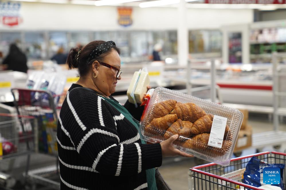 A woman shops at a supermarket in New York, the United States, on April 10, 2026. Earlier on Friday, the U.S. Bureau of Labor Statistics reported that the consumer price index in March rose 0.9 percent month on month and 3.3 percent year on year, with most of the increase coming from the surge in energy prices. (Xinhua/Zhang Fengguo)